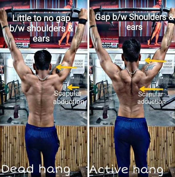 *It is important that you relax to create a “dead hang” so that the tissues can decompress appropriately and your shoulder tissue can strengthen and remodel.* see below for a “dead” hang vs “active” hang